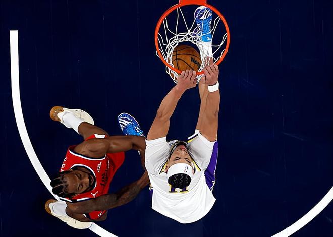 本場比賽中,湖人雖然輸?shù)袅吮荣悾乔蜿牭南劝l(fā)中鋒賈克森-海斯(Jaxson Hayes)也算是盡力了。海斯全場出場30分58秒,投籃4中3,罰球2中2,得到了8分5籃板2助攻1搶斷的數(shù)據(jù),還有1次失誤和5次犯規(guī),正負值為-13。海斯在進攻端并沒有得到太多的機會,但是他在這種情況下還是得到了不少的分數(shù),算是起到了一定的作用。除此之外,海斯在防守端也算是比較努力了,也算是能夠靠著自己在運動能力方面的優(yōu)勢發(fā)揮出一些作用??傮w來看,海斯在本場比賽中的表現(xiàn)算得上是相當賣力了,只是球隊的整體表現(xiàn)真是太糟糕了一些,不少球員的整體都差到了離譜的程度,他的努力也沒有辦法幫助球隊扭轉(zhuǎn)局面。