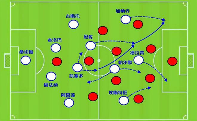 但是切爾西有一個問題,就是邊鋒效率并不高,尤其是加納喬這一側,看著很熱鬧但往往虎頭蛇尾。一旦對手兩側發(fā)力,切爾西邊后衛(wèi)被壓制住,球隊中圈人數就會不足。