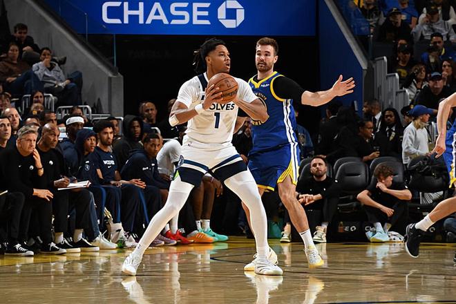 本場比賽中,森林狼的替補后場新星小特倫斯-香農(nóng)(Terrence Shannon Jr.)的表現(xiàn)還是頗有亮點的。香農(nóng)全場出場30分29秒,投籃7中3,罰球4中3,得到了9分4籃板3助攻2搶斷1蓋帽的全面數(shù)據(jù),還有2次失誤和3次犯規(guī),正負值也是達到了全場次高的+12。香農(nóng)在進攻端展現(xiàn)出了相當不錯得分能力,他的沖擊力和突破能力都非常突出,他在運動能力方面的優(yōu)勢非常明顯,而且對手還真是沒有辦法對他進行有效地限制。如果香農(nóng)的終結(jié)能力能夠更加出色,他在場上的表現(xiàn)還會更加突出。除此之外,香農(nóng)也是具備一定的支配球能力的,而且他在防守端的表現(xiàn)也是相當突出的。香農(nóng)在本場比賽中很好地完成了自己的任務,他也是抓住了難得的機會在攻防兩端都為球隊提供了不小的支持,為球隊的勝利做出了巨大的貢獻。